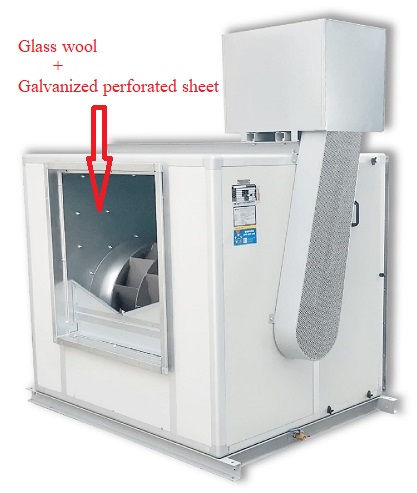 Fig 1. Sound Attenuation of Cabinet Fan - (Glass wool + Galvanized perforated sheet)                               Fig 2. Sound Attenuation of Jet Fan (a special type of axial fan) - (inlet and outlet silencer section)