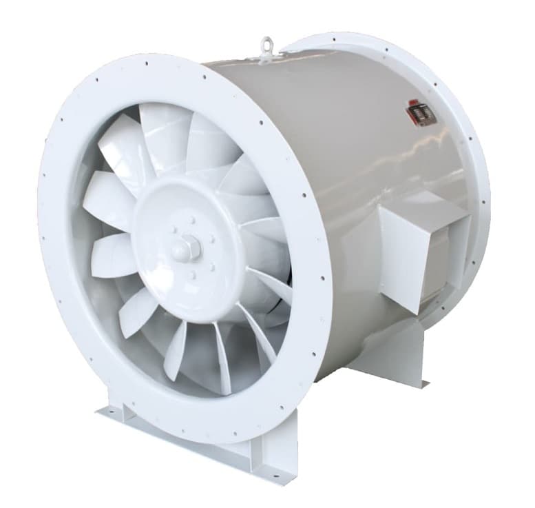 El ventilador se compone principalmente de impulsor, carcasa, colector de entrada, álabes guía, motor eléctrico y otros componentes. El impulsor cuenta con álabes en forma de ala torcida con características de aceleración meridiana, soldados al buje. Estos álabes han sido sometidos a pruebas de equilibrio dinámico y sobrevelocidad, y presentan un buen rendimiento aerodinámico. La carcasa es cilíndrica y está conectada en un conjunto, equipado con un colector de aire con función de reducción de ruido. La salida está equipada con deflectores de flujo, que garantizan una buena distribución del flujo de aire y una presión estable.