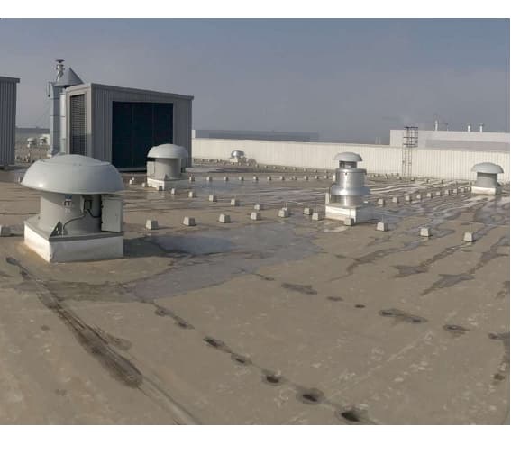 c. Carcasa: La resistencia estructural general de este ventilador está diseñada para velocidades de viento exteriores extremas de 50 m/s. El ventilador está fabricado en acero al carbono, procesado mediante estiramiento hidráulico, borde anular, etc. Esto garantiza una resistencia suficiente, mejora su apariencia, reduce su peso, reduce los requisitos de resistencia de la cimentación del techo y ofrece una buena resistencia al viento.